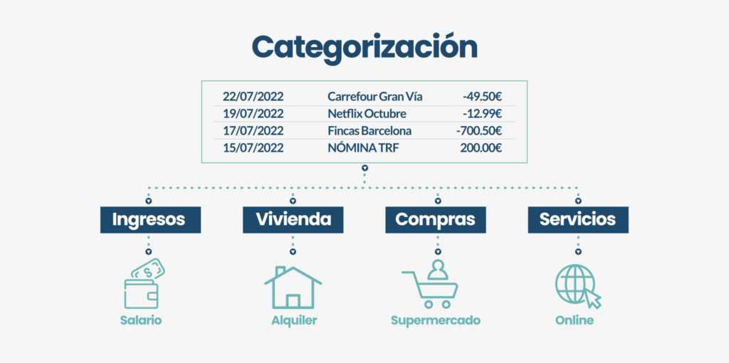 Una de las características más destacadas de la tecnología de agregación bancaria es la categorización de los gastos, de manera que los comparadores de préstamos pueden conocer los hábitos de consumo de sus usuarios para presentarles los productos o servicios que mejor se adapten a sus necesidades.
