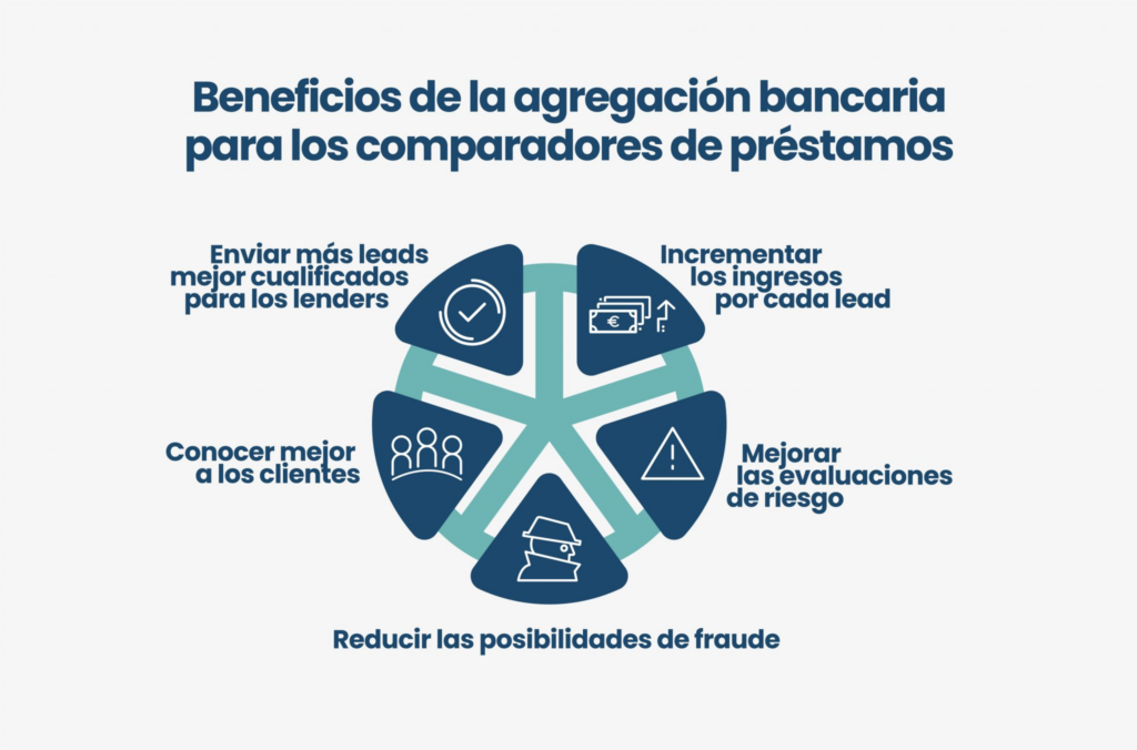 Por otro lado, los sitios web comparadores de préstamos pueden ofrecer una imagen mucho más detallada de los hábitos de consumo de sus clientes gracias a la agregación bancaria ya que les ayuda a cualificar cada lead con mayor precisión, para así venderlos a un precio más alto.