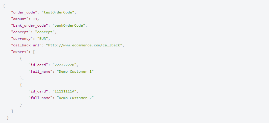A continuación vemos una petición de iniciación de pago de muestra.